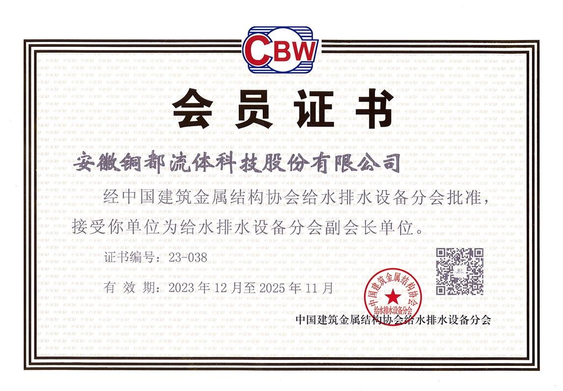 中国建筑金属结构协会给水排水设备分会副会长单位