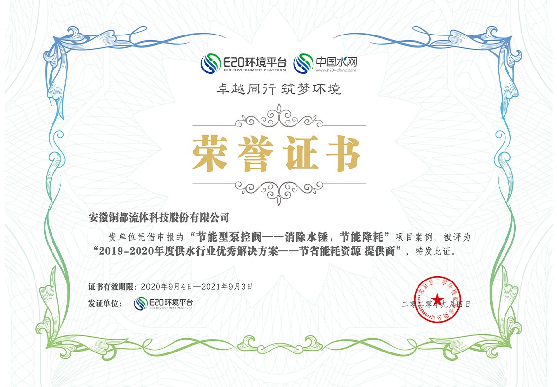 2019-2020年度供水行业优秀解决方案提供商