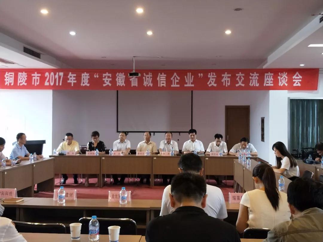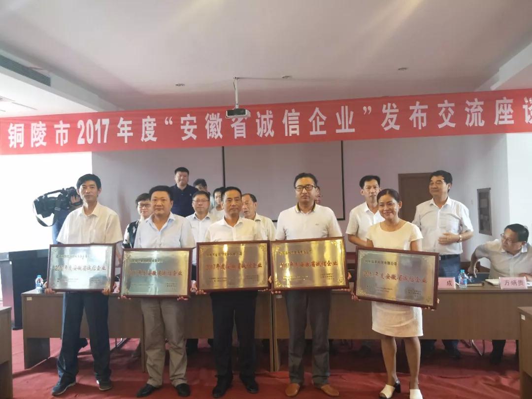 2018年7月6日,"安徽省诚信企业"发布交流会在安徽铜都流体科技股份有限公司隆重举行。我公司荣获"2017-2018年度"安徽省诚信企业"。
