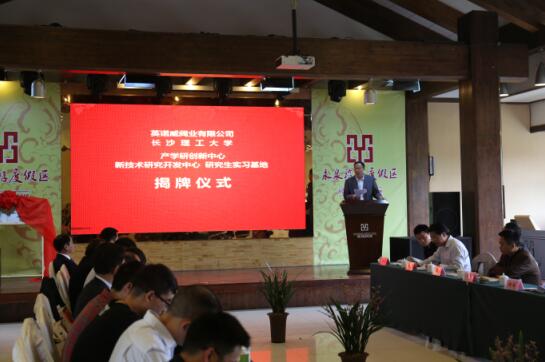 揭牌仪式上,英诺威阀业有限公司董事长杨凌杰介绍企业发展情况,长沙理工大学李志鹏教授介绍产学研创新中心建立及项目合作情况,长沙理工大学能源与动力工程学院副院长刘忠讲话。