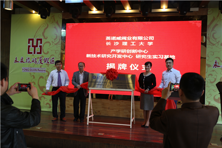 2018年4月11日上午,在铜陵永泉农庄举行,安徽铜都流体科技股份有限公司、英诺威阀业有限公司与长沙理工大学"产学研创新中心"、"新技术研究开发中心"、"研究生实习基地"揭牌仪式。