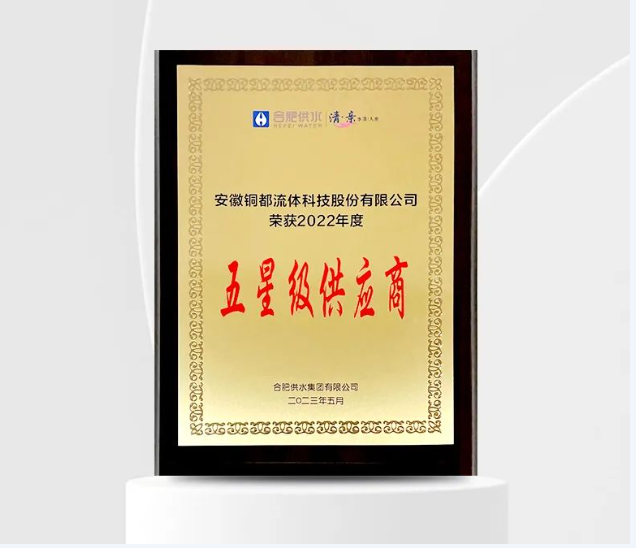 日前,合肥供水集团发布“2022年度星级供应商名单”,铜都流体荣获“五星级供应商”荣誉称号。