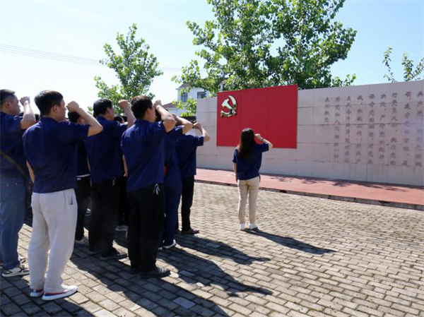 “ 我志愿加入中国共产党……”在展览馆前,全体党员同志,面对鲜红的党旗,高举右拳,字字铿锵,重温入党誓词,表达了全体党员同志不忘初心、牢记使命、永远奋斗的坚定理想信念。