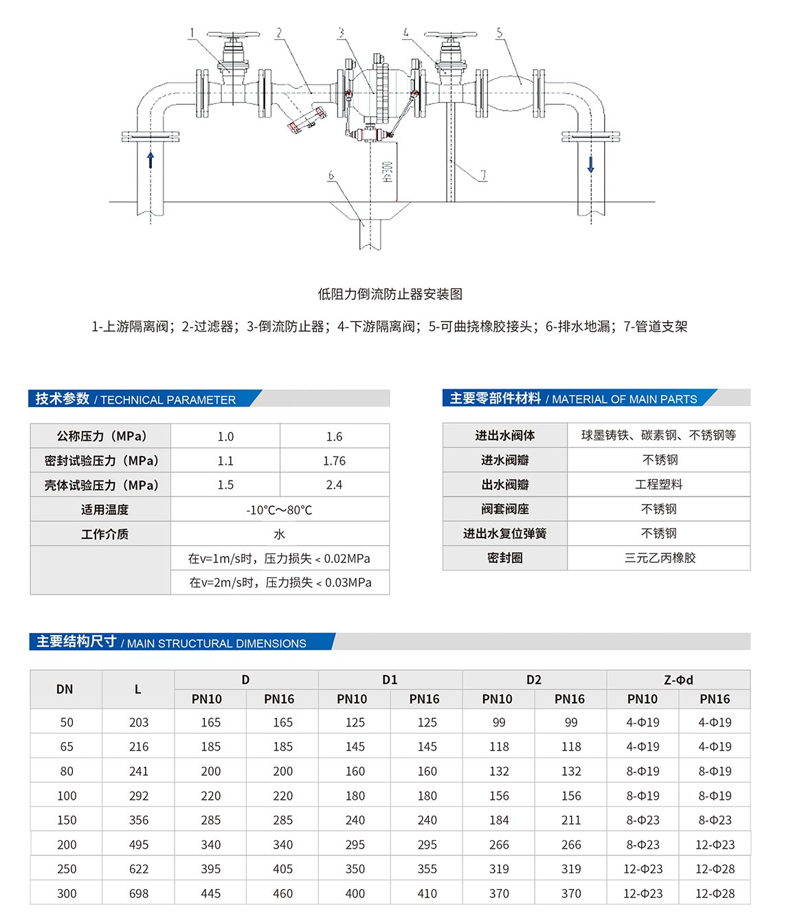 4、水损小,在回流工况下,中间腔始终与大气相通,且在管中平均流速为2m/s时的压力(水头)损失小于0.04MPa。