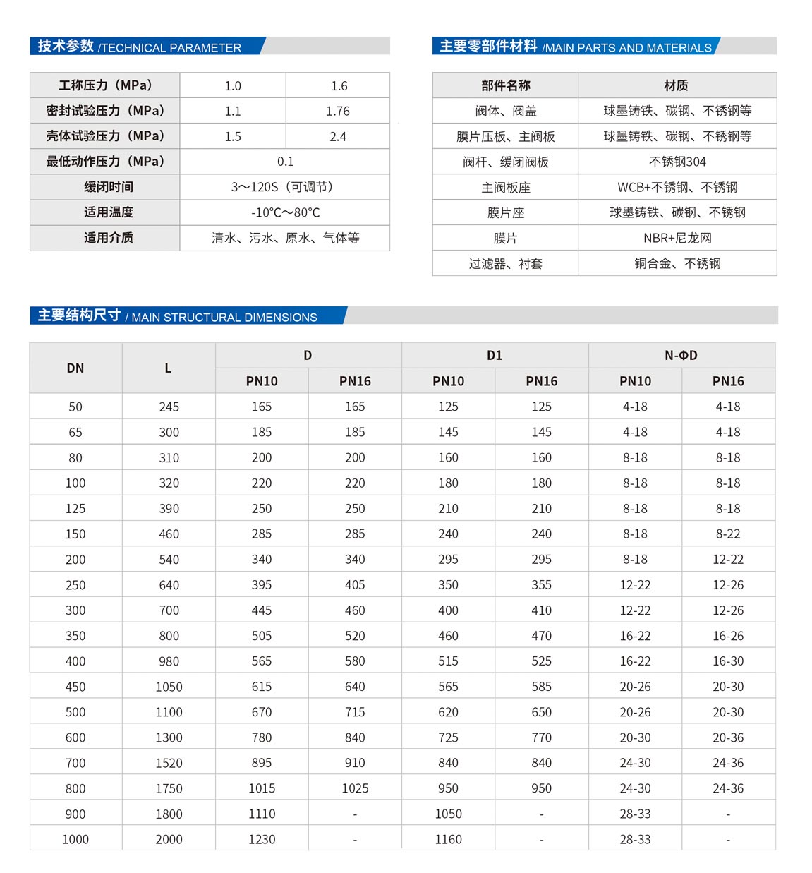 7、DN500口径以下选用膜片式,DN500口径以上选用活塞式。