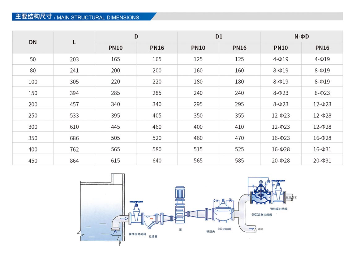900X紧急关闭阀,是一种用于消防用水与生活用水并联的供水系统中,用来调配供水方向的阀门。当火灾发生时,消防急需大量用水,900X紧急关闭阀立即切断生活用水,确保足够的消防用水:当消防停止用水压力减小时,阀门自动打开,呈常开状态,恢复生活供水。该阀使系统无须另设专门的消防单独供水管网,大大地节约了建设成本和用水量。阀门控制灵敏度高,安全可靠,调试简便,使用寿命长。
