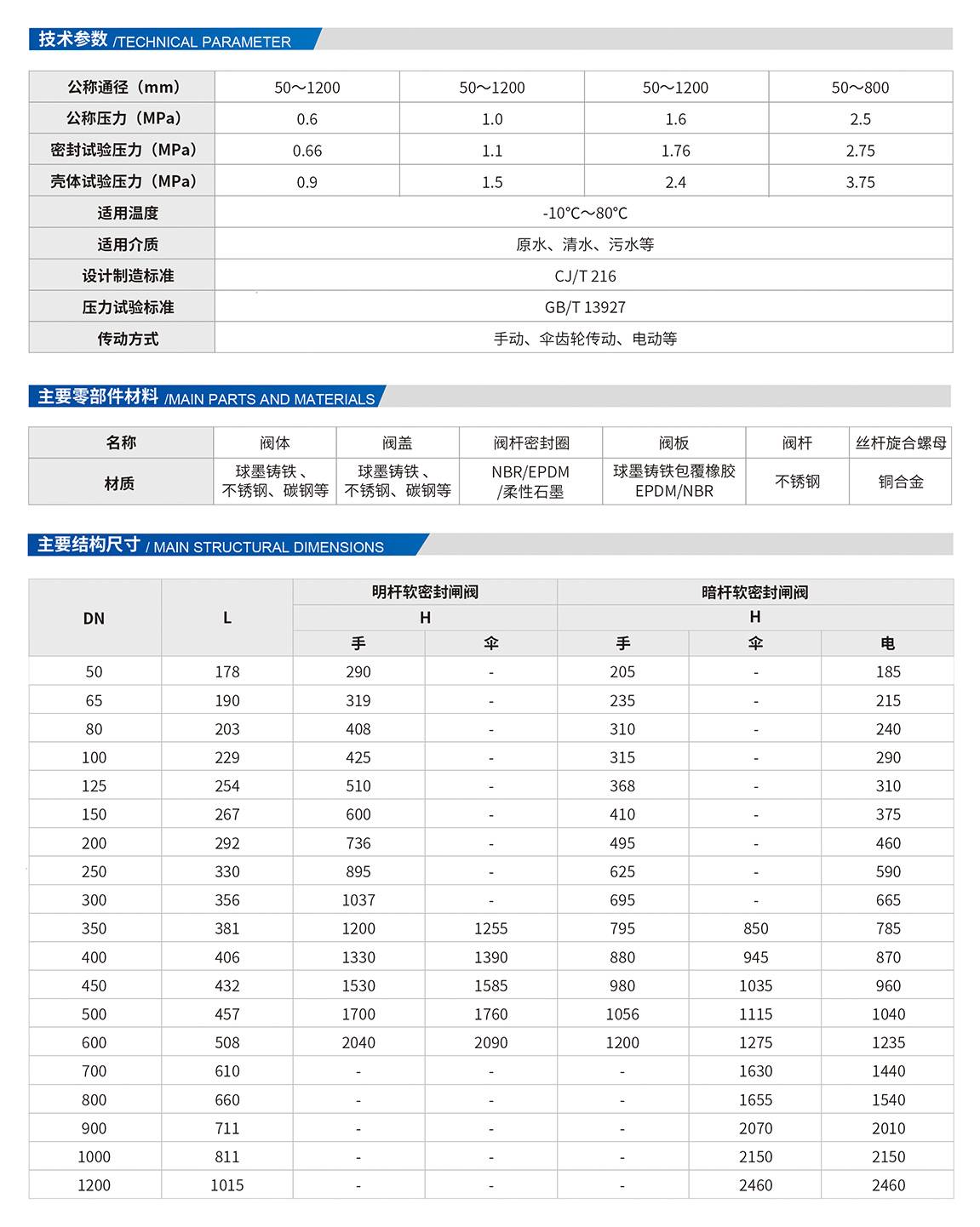 公司生产的软密封闸阀结合了国外的先进结构特点:阀体、阀盖、阀板、螺母等密封形式及外形结构特点均参照德国先进标准设计制造,而法兰连接尺寸及结构长度按照国家标准执行,将国外先进技术与中国实际工况完美结合,荣获“国家重点环境保护实用技术”, 安徽省科学技术研究成果”。